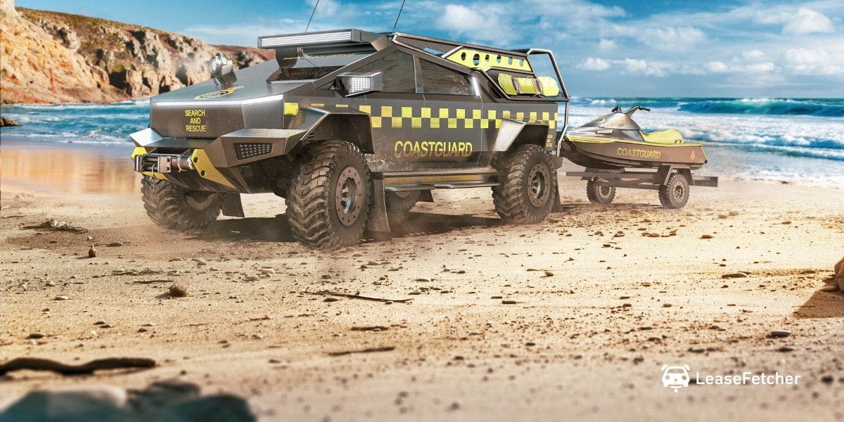 그리고, 독특한 범퍼와 함께 제트스키를 끌고 다닐 수 있는 디자인의 해안경비대용 사이버트럭은 오프로드를 위한 휠과 타이어. 그리고 거대한 LED 라이트바가 해안경비대 뿐 아니라, 전투용으로도 사용할 수 있을 것만 같다.