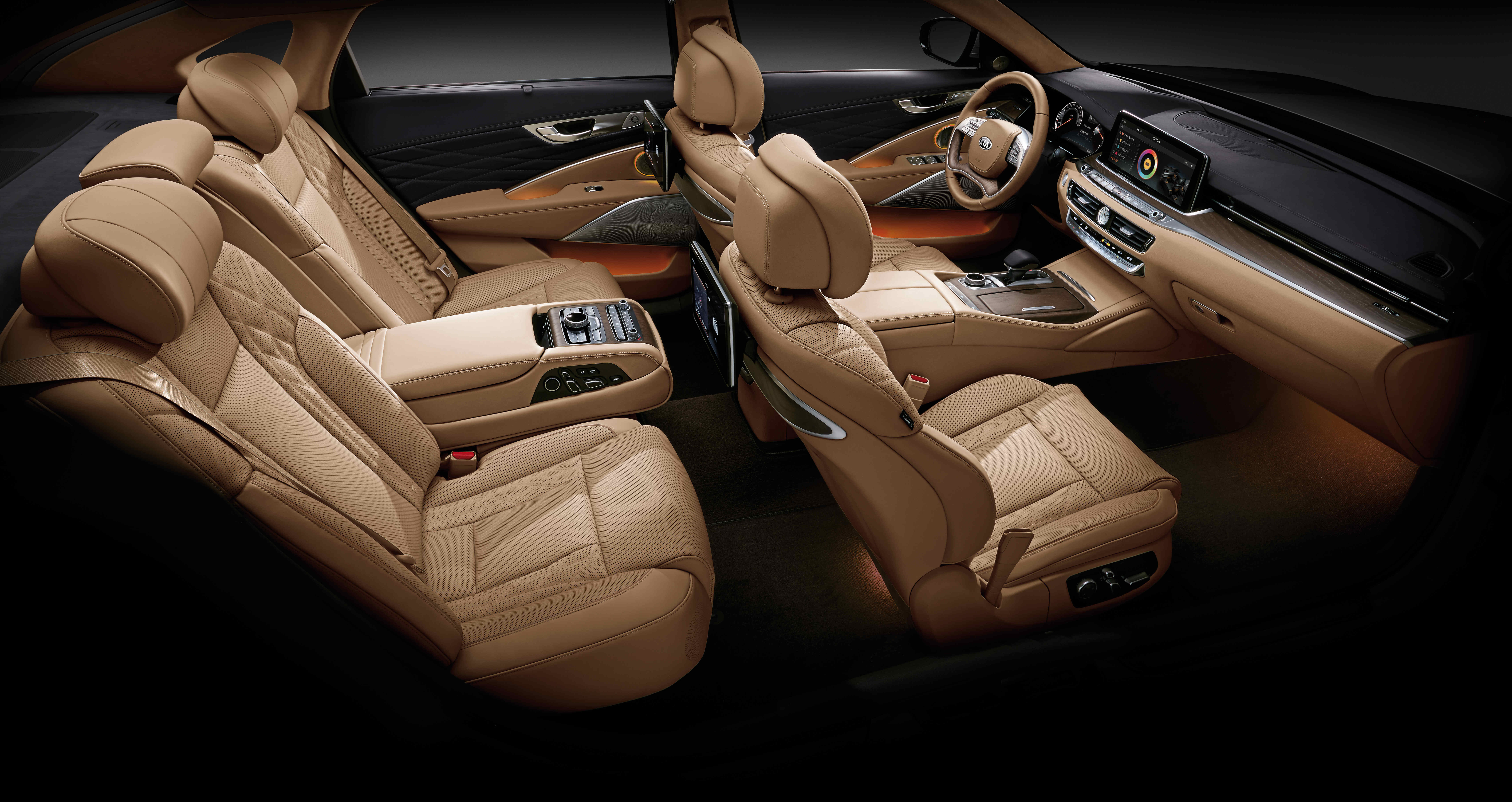 2021 년형 K9 은 내장 라인업에 밝은 갈색톤의 새들브라운 색상을 도입하는 한편, 엠비언트 라이트가 적용되는 범위가 늘어났으며, 신규 적용된 음성인식 기능을 통해 창문과 선루프, 트렁크를 개폐하고 시트와 열선 및 통풍시트와 공조장치까지 제어할 수 있도록 만들었고, 앞좌석에는 고속 무선 충전 시스템을 탑재해 편의성을 높였다.