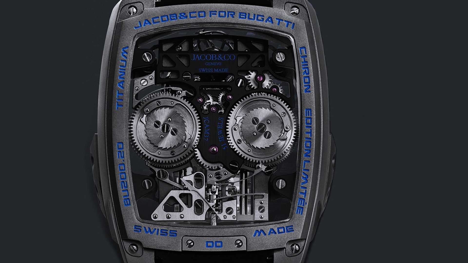 Jacob & Co. 에서 이 시계를 만드는데에는 무려 1년 이상이 걸렸다고 하며, 시계 내부에 578 개의 부품들로 제작이 만만치 않으며, 검은색 티타늄 케이스를 사용해 가벼운 무게로 만들었다. 이렇게 하이퍼카 및 슈퍼카와 콜라보를 하는 경우도 종종 있곤 한데, 이번 경우에는 엔진의 동작을 그래도 따라한 모습이 상당히 독특하다.