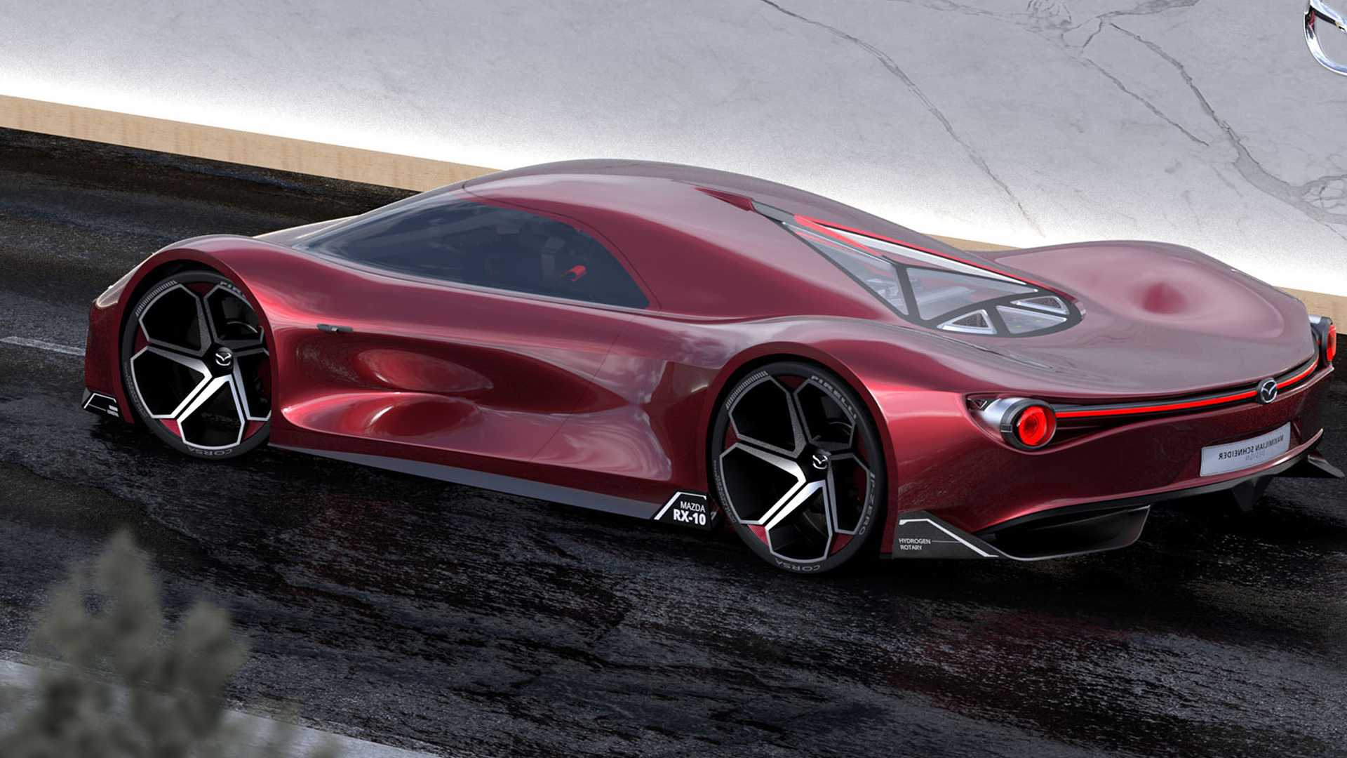 마쯔다(Mazda)가 르망(Le Mans) 을 위한 슈퍼카를 만든다면 어떤 모습일까? 디자이너 Maximillian Schneider 은 이러한 궁금증에 대한 답을 보여주고 있다. 과거 1980년내 그룹 C 내구레이스에 사용되었던 레이싱카의 디자인에서 영감을 받아 공기역학적인 롱테일 마쯔다 RX-10 을 보여주고 있는데, 스포일러 없이도 드라마틱한 라인을 보여주고 있으며, 시각적으로도 멋진 모습을 보여주고 있다. 디자이너 슈나이더가 디자인한 이 차량은 제로백 2.5초의 성능과 최고시속 427km/h 를 보여주는 780마력의 수소연료를 사용하는 미드십 엔진에 프론트에는 두개의 전기모터를 더해 250마력을 추가한다고 한다. 물론, 이 차량은 실제가 아니며, 디자이너 슈나이더의 디자인이란 점을 알아야 한다. 하지만, 실제로 만들어져도 상당히 괜찮을 것만 같다.