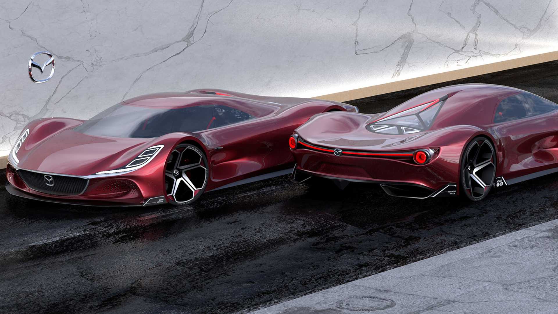 마쯔다(Mazda)가 르망(Le Mans) 을 위한 슈퍼카를 만든다면 어떤 모습일까? 디자이너 Maximillian Schneider 은 이러한 궁금증에 대한 답을 보여주고 있다. 과거 1980년내 그룹 C 내구레이스에 사용되었던 레이싱카의 디자인에서 영감을 받아 공기역학적인 롱테일 마쯔다 RX-10 을 보여주고 있는데, 스포일러 없이도 드라마틱한 라인을 보여주고 있으며, 시각적으로도 멋진 모습을 보여주고 있다. 디자이너 슈나이더가 디자인한 이 차량은 제로백 2.5초의 성능과 최고시속 427km/h 를 보여주는 780마력의 수소연료를 사용하는 미드십 엔진에 프론트에는 두개의 전기모터를 더해 250마력을 추가한다고 한다. 물론, 이 차량은 실제가 아니며, 디자이너 슈나이더의 디자인이란 점을 알아야 한다. 하지만, 실제로 만들어져도 상당히 괜찮을 것만 같다.
