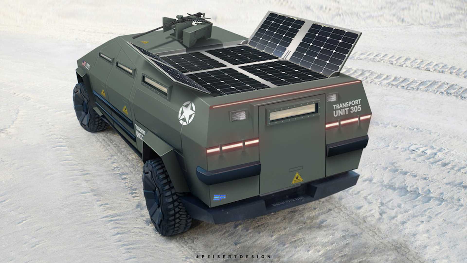 이 랜더링을 디자인한 Peisert 는 전기 픽업트럭인 사이버트럭의 강력한 파워트레인과 기동력을 기반으로 이런 랜더링을 했으며, 실제로 장갑기능과 방탄유리 등을 더한다면 실제로 사용되어도 괜찮을 것처럼 보인다. 전술용으로 랜더링한 디자인을 보면, 루프에 소총도 달려있으며, 태양광발전 설비까지 있는 등, 어쩌면 미래 전술용 차량이 갖추어야 할 모습을 미리 보는 것 같기도 하다.