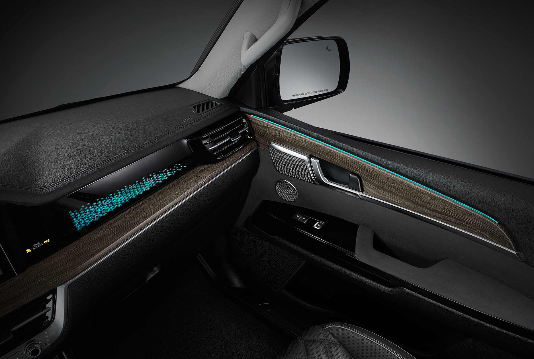 또한, 동승석 크래쉬 패드에만 적용되었던 무드램프가 1열 양쪽 도어 트림까지 확장되어 고급스러움을 더해주고 있다. 뿐만 아니라, 그래비티 모델 출시와 함께 모하비 더 마스터의 모든 트림의 6인승 모델 2열에 '컵홀더' 를 신규 적용하는 한편, 헤드레스트의 크기를 키워 편의성을 높였다.