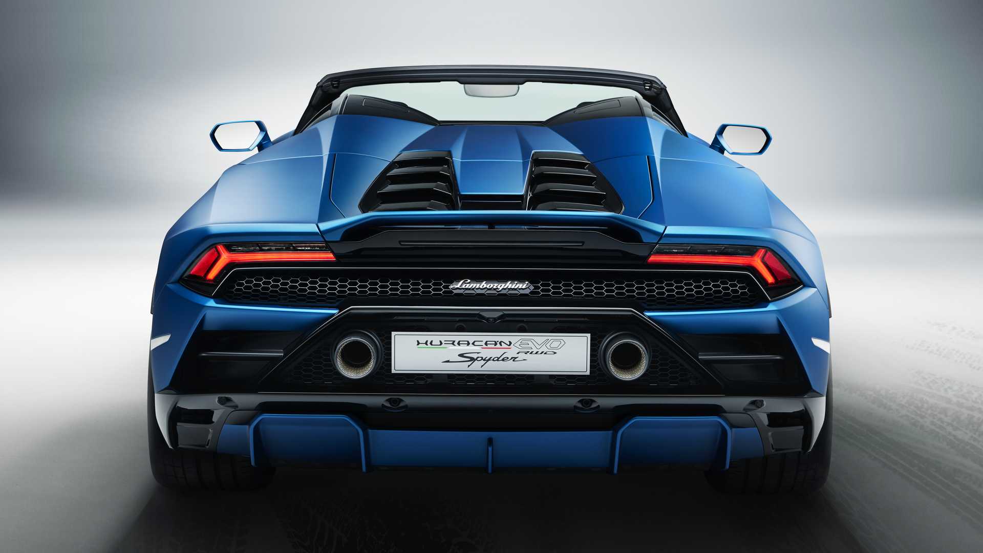 우선, 스파이더 모델답게 루프를 열고 닫는데 17 초의 시간이 걸리며, 50km/h 의 속도에서도 작동이 가능하다. 여기에 우라칸 에보(EVO) 만의 독특한 컬러가 적용되어 있고, 19인치 피렐리 P Zero 타이어가 기본 제공되며, 옵션으로 20인치 휠과 카본 세라믹 브레이크도 사용할 수 있다. 소프트탑의 우라칸 에보의 무게는 1,509kg 으로 쿠페형 모델의 1,431kg 보다 약간 더 무거우며, 전체적으로 인테리어는 모두 같고, 애플 카플레이(Apple CarPlay) 기능이 들어간 8.4인치 인포테인먼트 모니터가 적용되어 있다. 람보르기니 우라칸 에보(EVO) RWD 스파이더의 가격은 $229,428(한화 약 2억 8천만원) 이다.