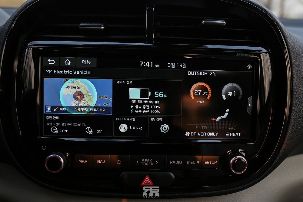 일반 쏘울(SOUL) 도 매력적인 디자인을 보여주지만, 쏘울 EV 역시 전기차다운 하이테크한 모습을 보여주고 있다. 풀 LED 헤드램프와 EV 전용 17인치 알로이 휠, EV 만의 기능과 컬러가 더해진 인테리어는 사운드 무드램프와 함께 감성을 더해주고 있으며, 10.25인치 와이드 내비게이션과 EV 전용 슈퍼비전 클러스터는 시원시원한 모습을 보여준다. 일단 센스 있는 운전자를 만들어주는 것만 같다.