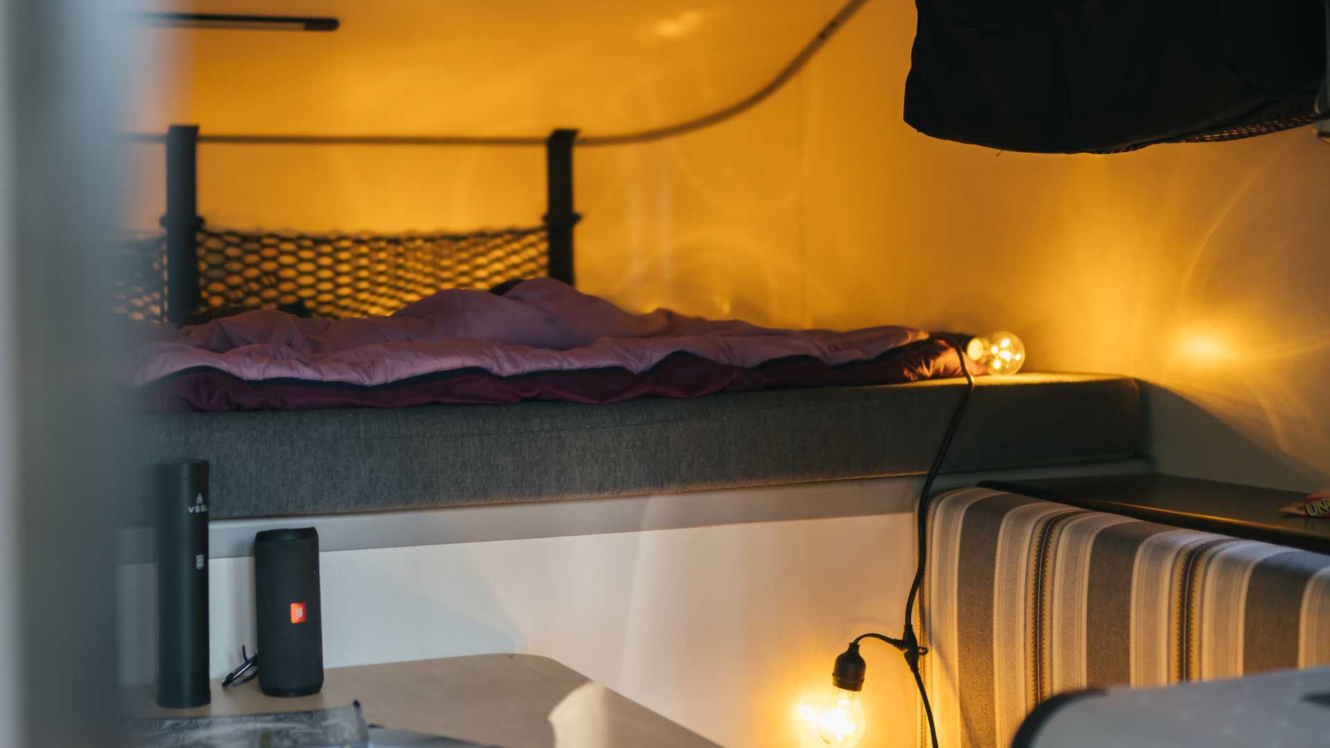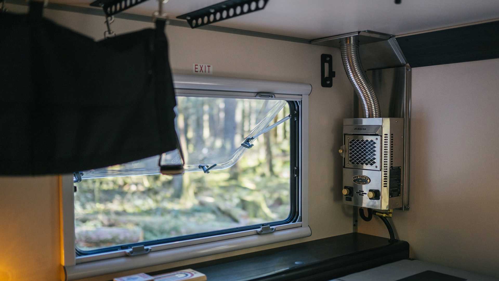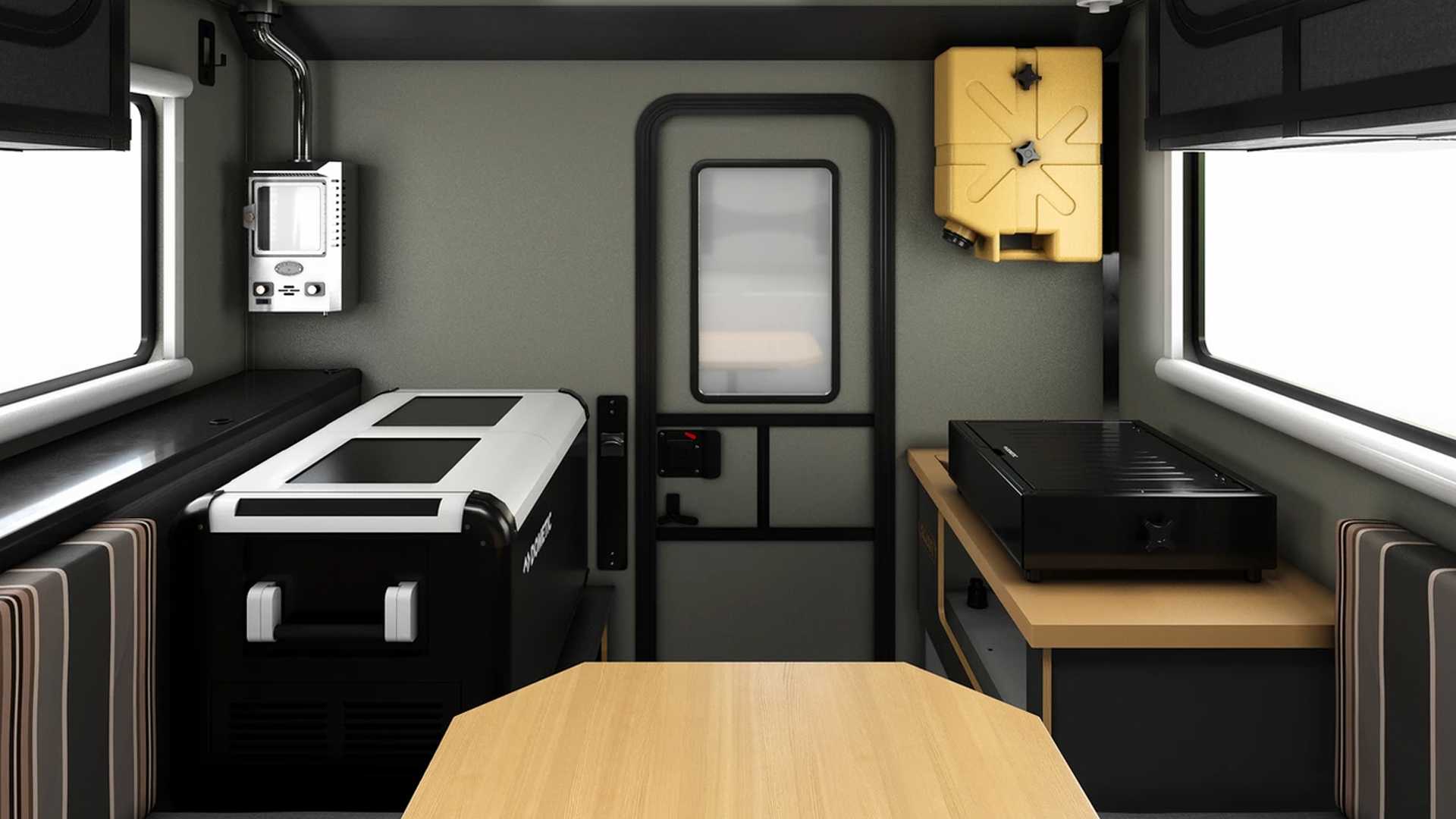 실내는 의외로 넓은 편이며, 안에는 소형 냉장고와 히터, 휴대용 화장실, 휴대용 쿡탑 스토브 등이 있으며, 식사를 위해 싱크대와 가스탱크 및 160W 짜리 태양광 발전기도 설치가 되어 있다.