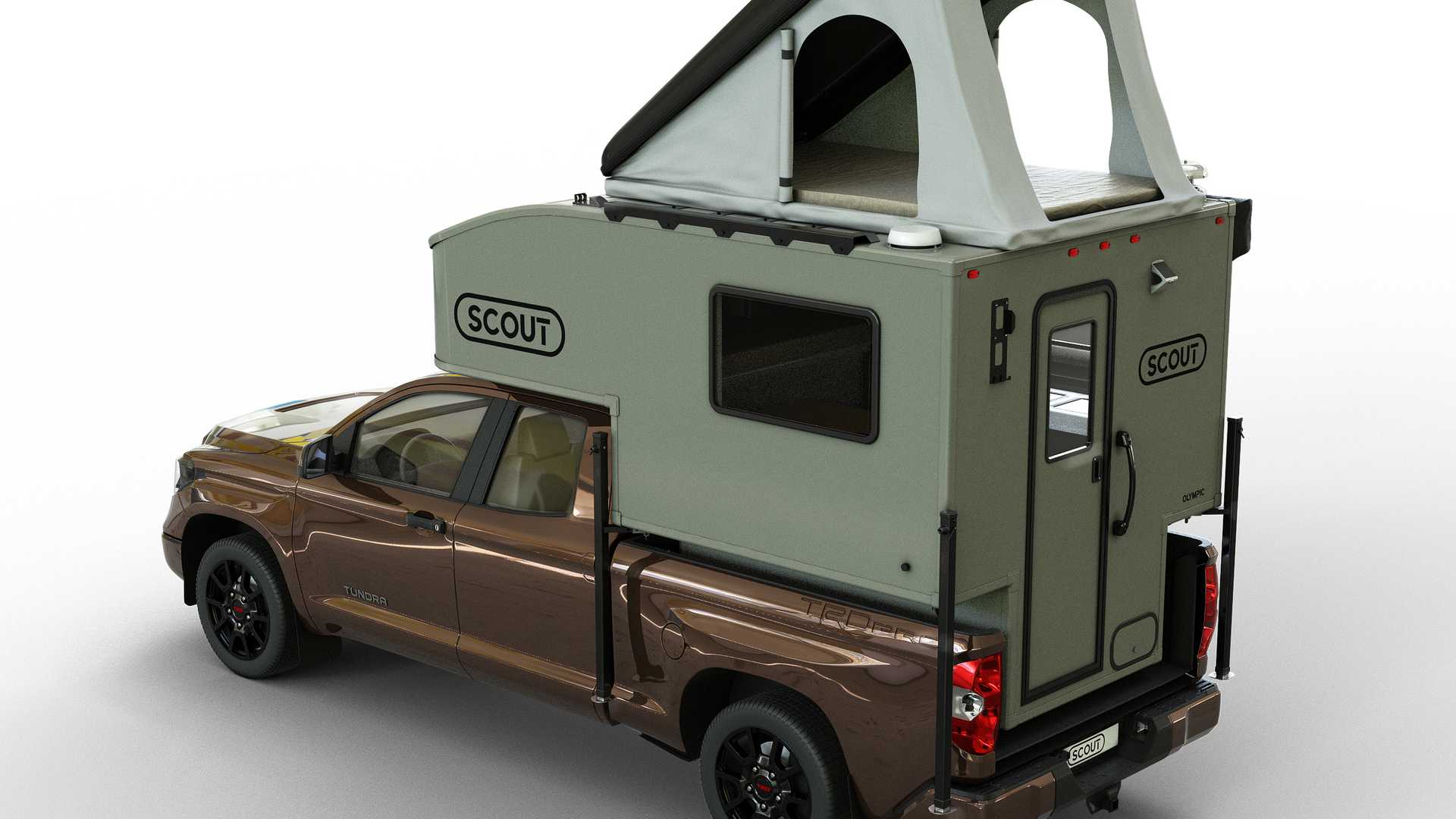 캠핑을 갈 때, 카라반이나 캠핑밴을 이용할수도 있지만, 픽업트럭으로 캠핑을 가면서 적재함에 캠핑용 캐빈을 올려 다니는 것도 좋은 방법 중 하나다. Scout Campers 라는 회사에서 만든 Olympic 이라는 제품은 최대 6명까지 잠을 잘 수 있다고 하는데, 루프탑 텐트에서 2명이 자고, 캠핑캐빈에서 4명까지 잘 수 있다고 한다. 굳이 그럴 필요는 없겠지만 말이다. Scout Campers 에서는 이 제품을 처음으로 만들었다고 하는데, 처음 만든 것 치고는 퀄리티가 나쁜 편이 아니다.