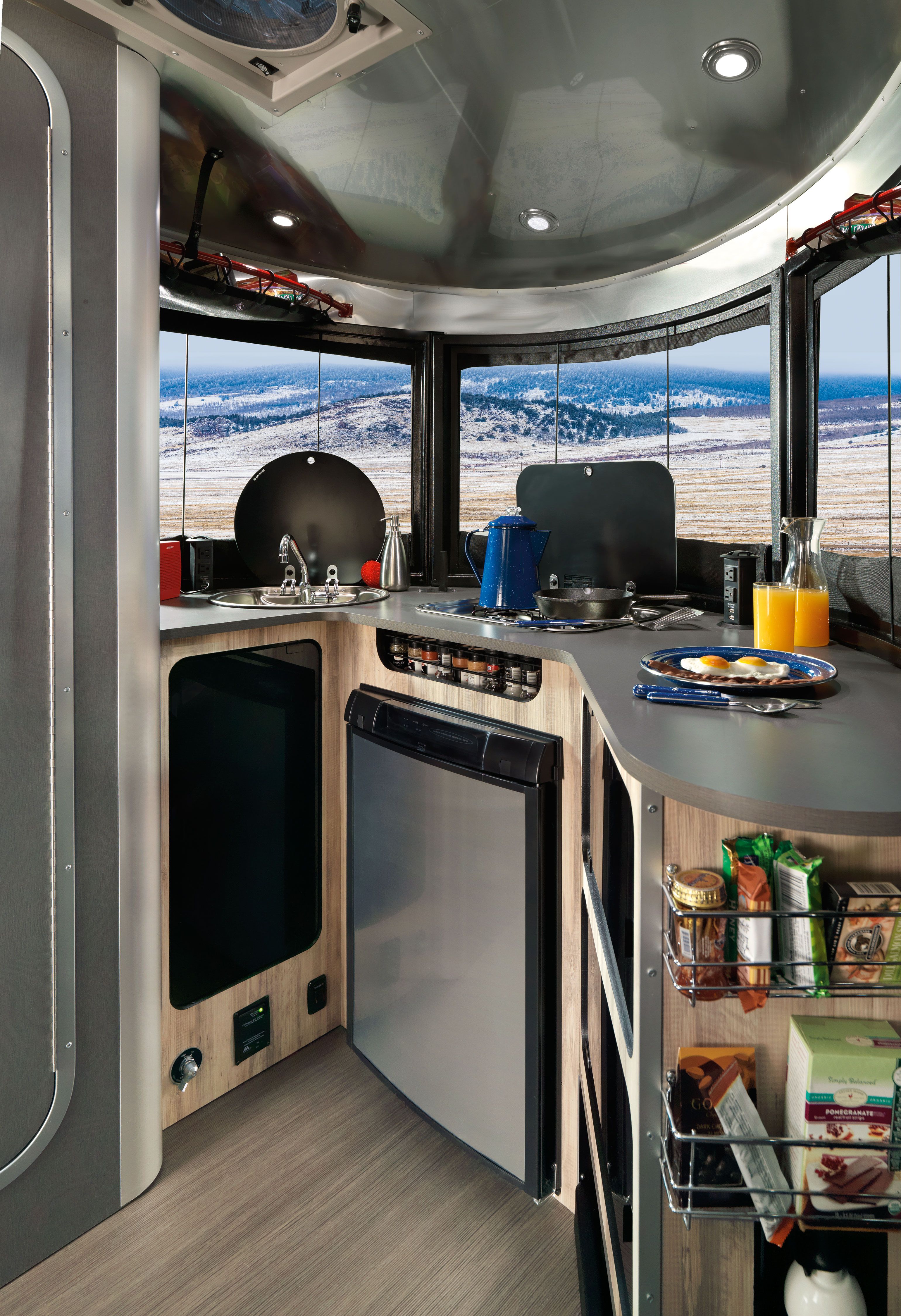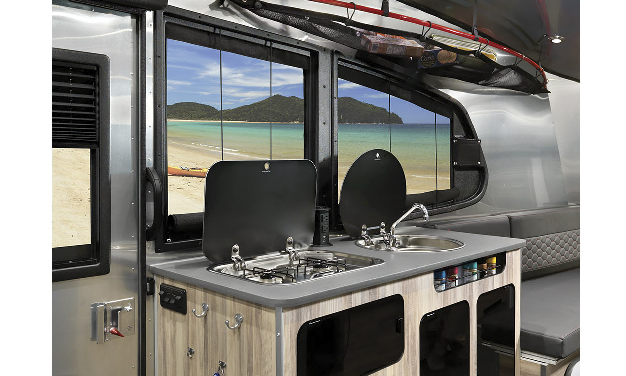 에어스트림 베이스 20은 6,096mm 의 길이에 2,408mm 의 너비, 높이는 2,789mm 로 이전 모델보다 더 커졌고, 커진 만큼 내부 공간이 더 여유로워졌으며, 파노라마 전면창을 사용하고, U 자형 소파를 배치했다. 최대 성인 4명이 사용할 수 있는 에어스트림 베이스 20은 테이블 회전도 가능하며, 전면창 덕분에 뛰어난 개방감을 보여주고, 실내 공간은 아늑한 것이 특징이다. 물론, 캠핑 트레일러답게 화장실과 주방도 설치되어 있다.