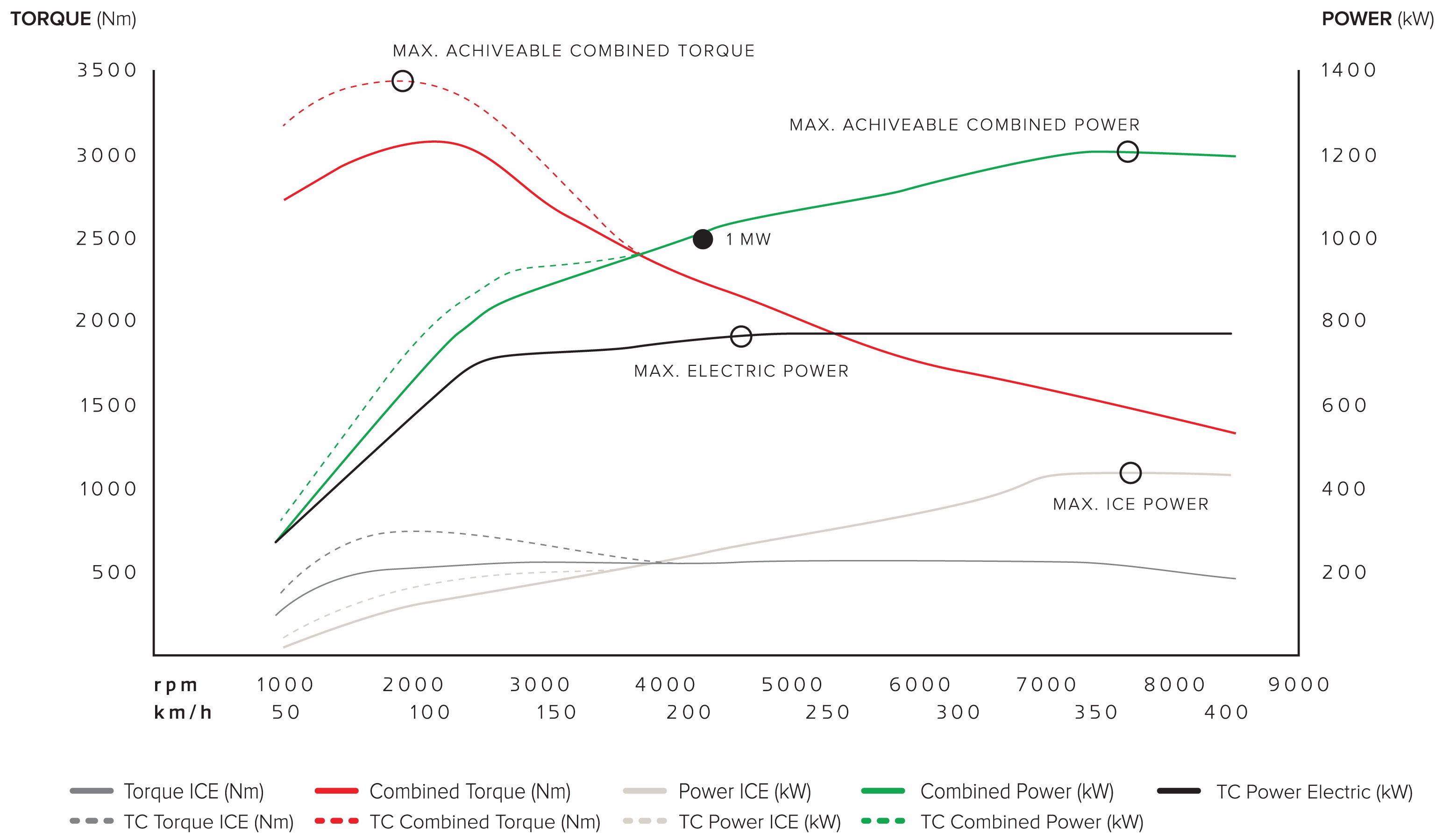 하지만, 2.0리터 3기통 Freevalve 엔진과 3개의 전기모터로 총 1,700마력, 3,500Nm 의 엄청난 출력을 자랑한다는 점은 여전히 코닉세그다운데, 2.0리터 3기통 엔진으로만 듀얼터보차져를 장착해 600마력, 600Nm 의 출력을 낸다는 점이 놀랍다. 그리고, Gemera 는 제로백 1.9초에 최고속도는 400km/h 를 자랑한다.