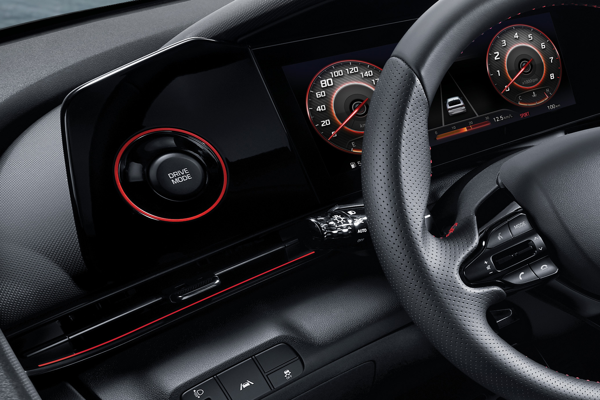 올해 3월에 공개된 '올 뉴 아반떼' 에서 궁금했던 용도가 드디어 밝혀졌다. 계기판 왼쪽의 빈 공간이었는데, 처음에는 디스플레이가 들어가려고 하다가 그냥 남겨둔 공간이라는 말과 무선충전을 하게 해려고 했었다라는 등의 다양한 의견이 있었고, 마치 저금통처럼 생겨서 이게 뭔가 싶었는데, 아반떼 N 라인의 실내 이미지가 공개되면서, 그 용도가 밝혀졌다. 바로, '드라이브모드 셀렉터' 였다.