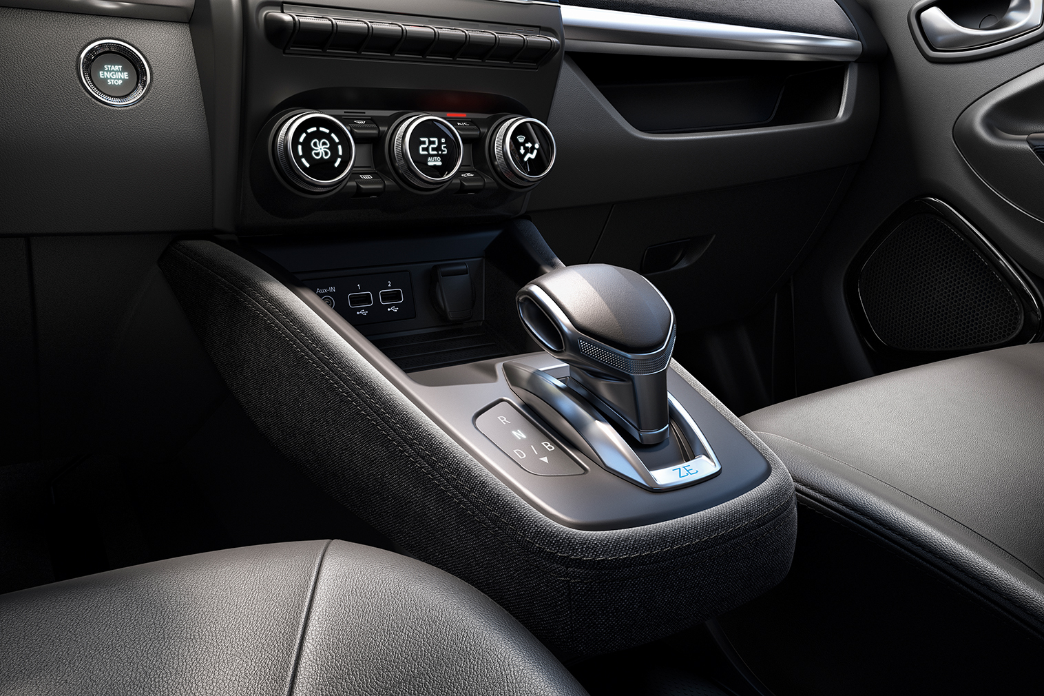조에(ZOE) 의 인테리어 역시 친환경적이면서도 미래지향적인 모습을 보여주는데, 동급 최대 10.25인치의 TFT 클러스터와 센터페시아에 이지 커넥트(EASY CONNECT) 멀티미디어 시스템이 적용된 터치방식 9.3인치 세로형 디스플레이가 탑재되었고, 공조기능은 감각적인 디자인으로 별도 적용되어 있다. 또한, 친환경 인테리어 소재를 적용했는데, 젠(ZEN) 트림과 인텐스 에코(INTENS ECO) 트림에는 도어 암레스트와 대시보드, 시트 등에 업사이클 패브릭이 사용되어 전기차 제조 과정에서도 CO2 배출을 줄이기 위한 르노의 노력을 확실히 보여주고 있다.