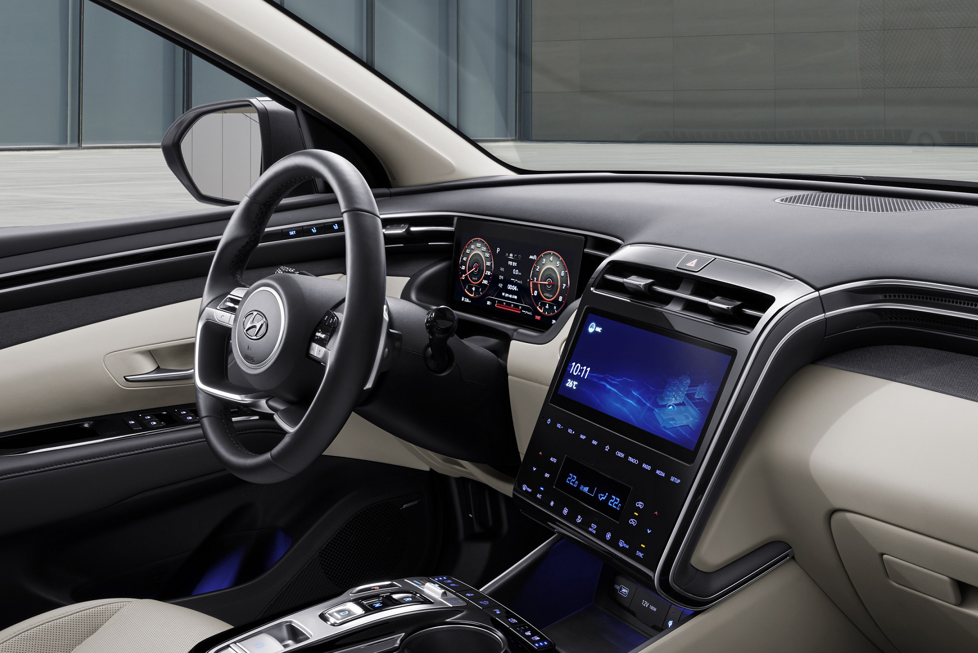일반적인 계기판들은 덮개가 있어서 주간시인성을 확보해주고 있었는데, 올뉴투싼에는 덮개가 없는 형태로 전방 개방감이 일반 차량과는 사뭇 다른 모습을 보여주고 있다. 특히, 10.25인치의 큰 화면이 개방감을 더해주고 있다. 이 외에도 후석 도어트림까지 이어지는 실버 가니쉬 라인이 공간이 넓어지는 시각적 효과를 보여주고 있다.