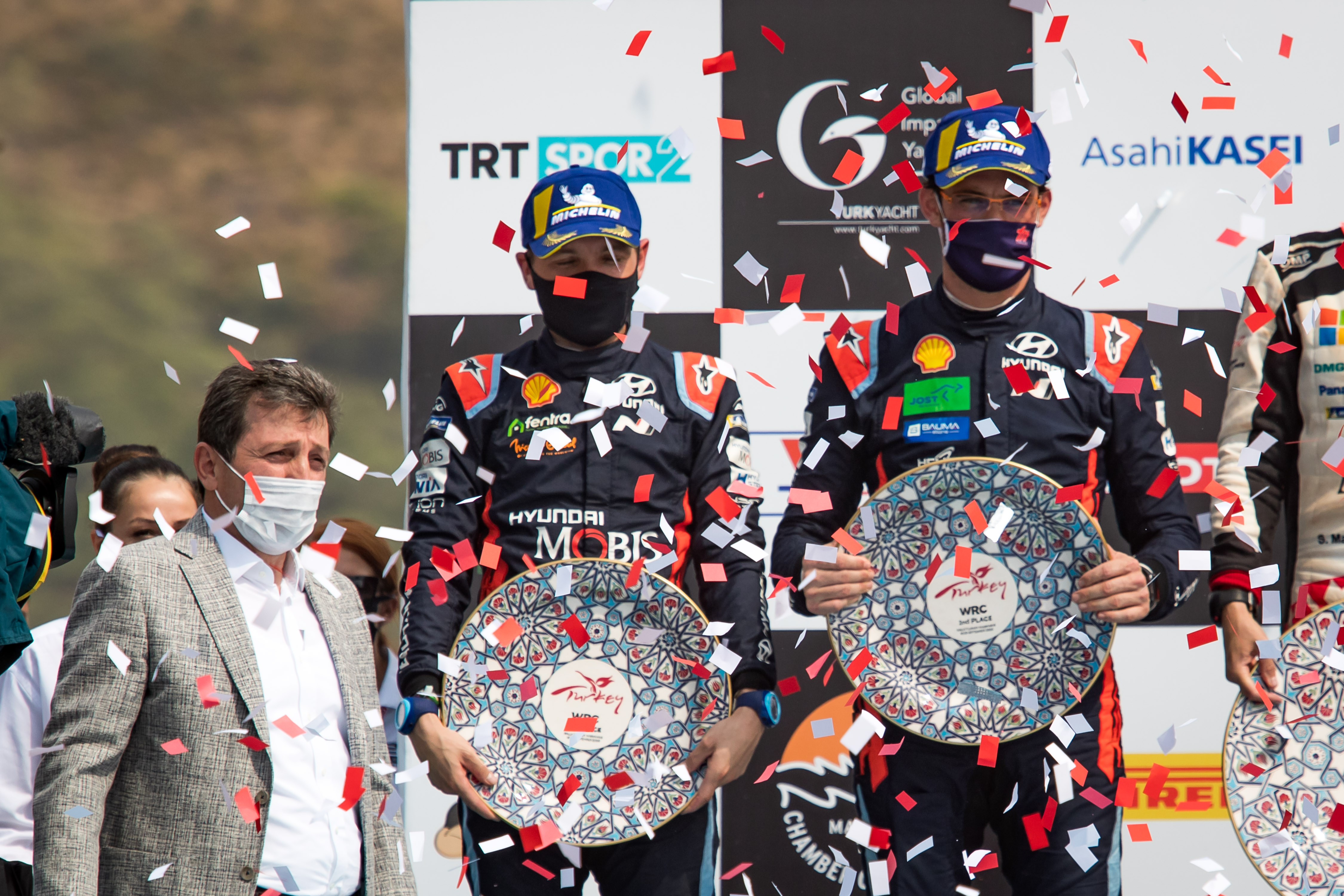 하지만, 타이어 손상으로 3위까지 내려갔던 티에리 누빌이 일요일 남은 3개의 스테이지에서 가장 빠른 기록을 내며, 선두권과의 격차를 좁혀갔고, 결국 1위 토요타팀 소속 엘핀 에반스 선수에 35.2초 뒤진 2위로 터키 랠리를 마쳤다고 한다. 누빌은 i20 Coupe WRC 경주차와 함께 총 12개로 구성된 터키 랠리 스테이지 중 절반이 넘는 7개에서 가장 빠른 기록을 달성하며 압도적인 실력을 뽐냈고, 팀 동료 뢰브 역시 타이어 손상을 입었지만, 안전적인 주행을 이어가 3위를 기록해, 에스토니아 랠리에 이어 2020 시즌 두번째 더블 포디움을 선사했다. 이번 더블 포디움을 통해 현대자동차는 제조사 부문 포인트를 33점 더해 제조사 부문 챔피언십 종합 순위 2위를 유지했다.
