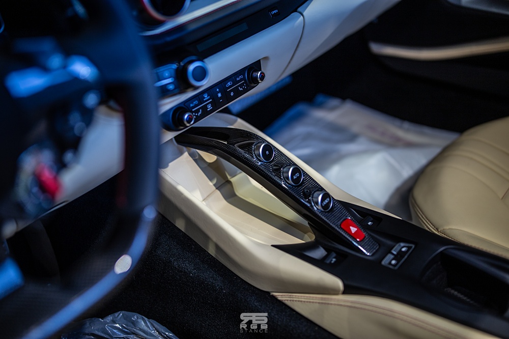 실내 버튼들 역시 카본파이버와 함께, 페라리다운 역동성과 럭셔리한 디자인으로 마감이 되어 있다.