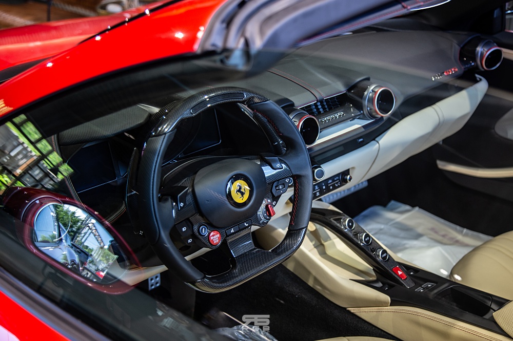 로쏘 코르사로 불리는 강렬한 레드컬러의 페라리 812 GTS 는 지난해 페라리가 마지막 양산형 V12 엔진이 들어간 스파이더를 출시한 지 50년만에 새롭게 출시한 라인업으로, 강렬한 존재감을 보여주고 있다.