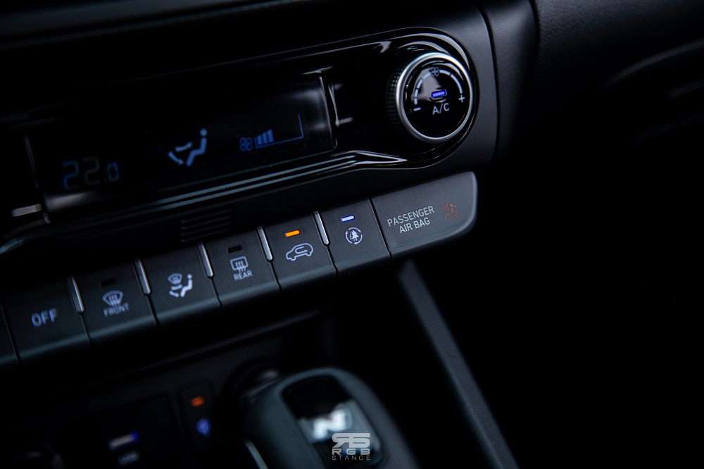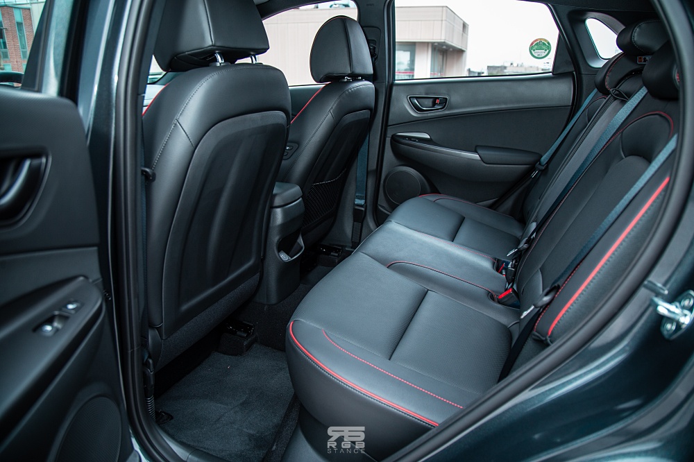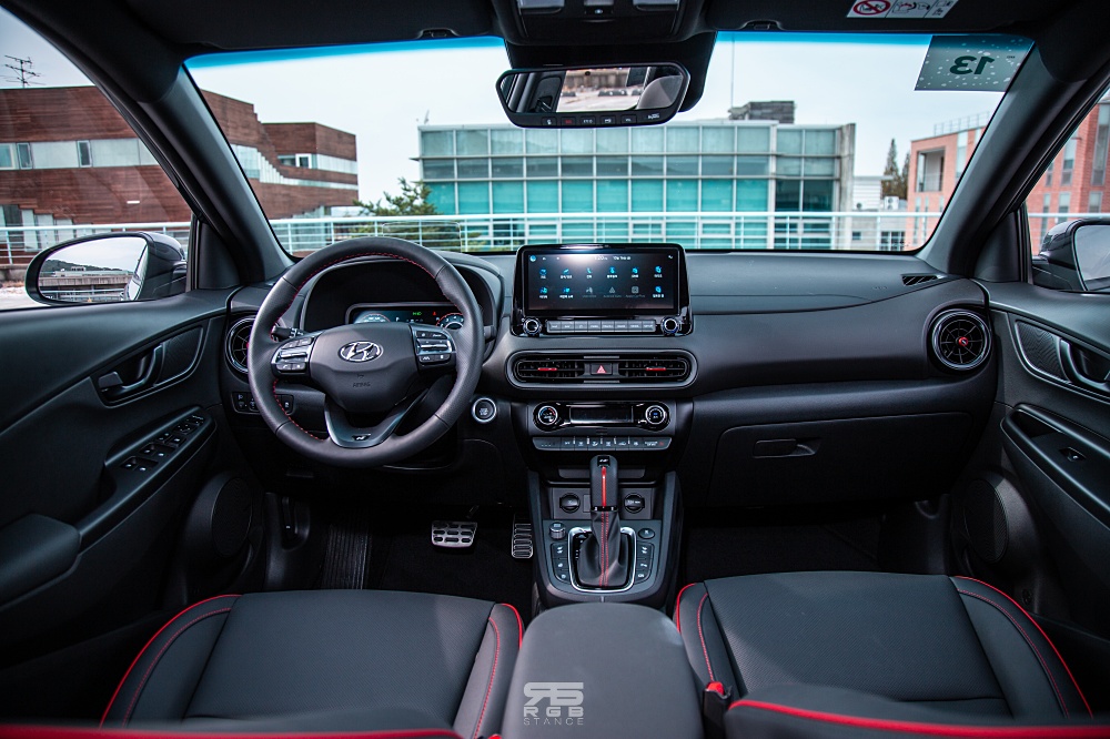 더 뉴 코나는 전장이 40mm 늘어났고, 2열 레그룸은 13mm 확장되어 후석 공간성을 개선했고, 트렁크 역시 10리터 더 커졌다. 그리고, 눈에 띄는 변화는 바로 10.25인치 대화면 디스플레이와 계기판이다. 여기에 N 라인 전용 시트와 스티어링 휠 및 기어노브와 공조기쪽의 빨간색 컬러 포인트와 앰비언트 라이트가 감각적이고, 세련된 모습을 만들어주고 있다.