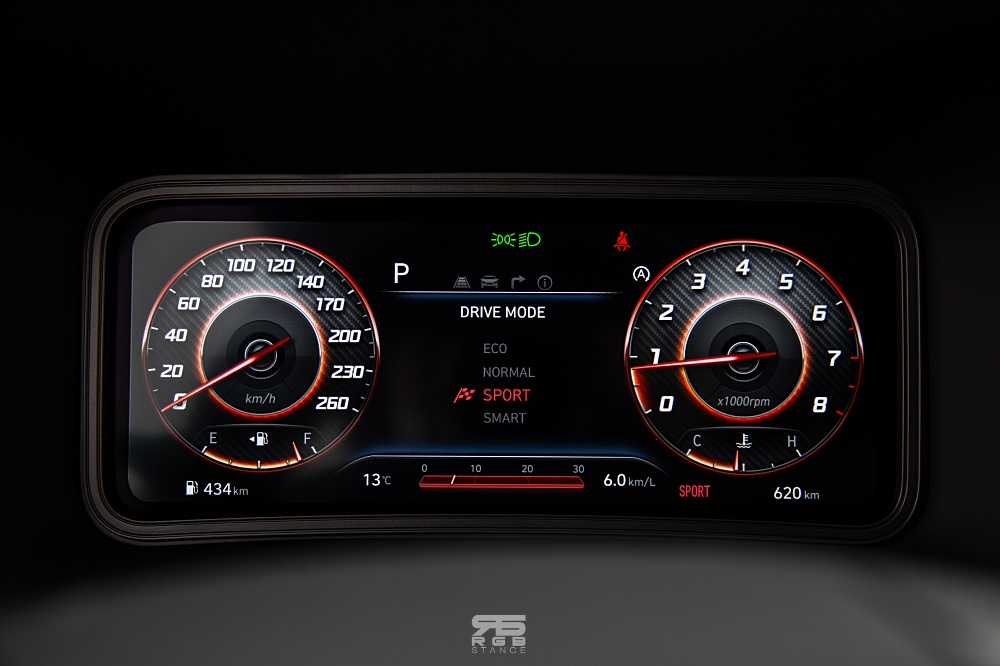 무엇보다 빨간색 스티치가 적용된 기어노브와 스티어링 휠 및 시트가 인상적이다.