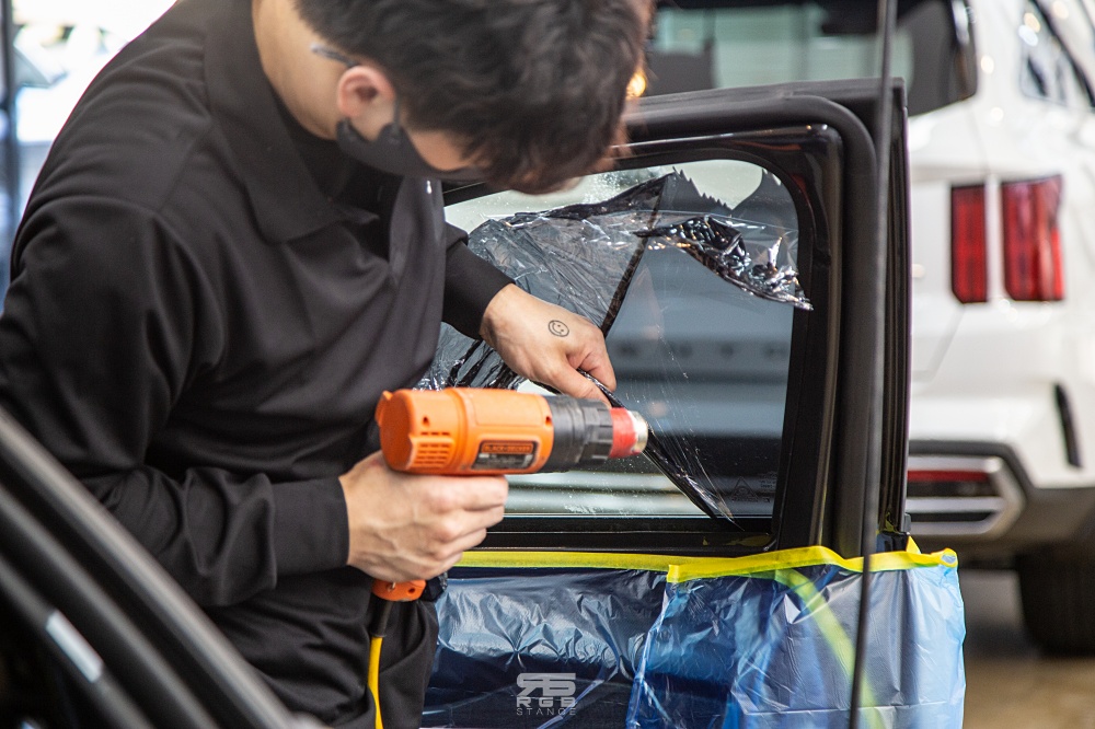 썬팅 재시공은 필름 제거부터 시작! 필름 제거를 위해 스팀을 사용하기도 하고, 히팅건을 사용하기도 하는데, 작업자의 판단에 맡겨두면 된다. 어차피 알아서 잘 해준다.
